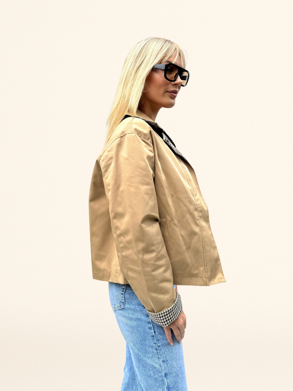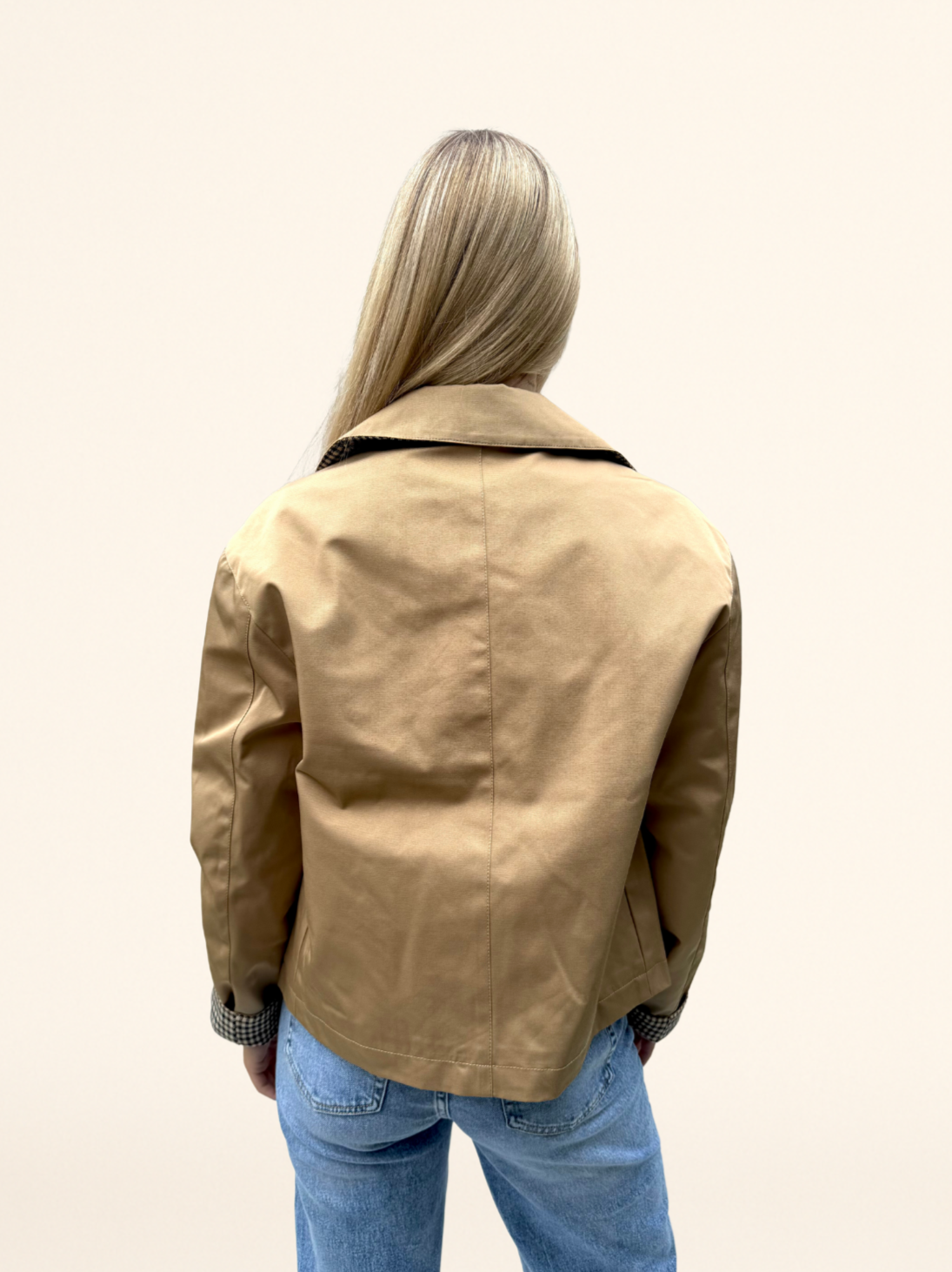 • Details: ritssluiting, zakken, drukknopen, geruite binnenkant